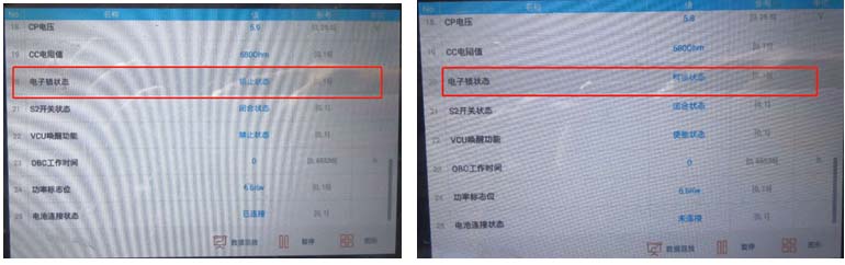故障现象:车辆无法充电(慢充)、仪表显示充电指示灯,无充电交互信息,诊断仪读取车辆系统无故障,检查充电枪CC电阻正常、CP电压12V/PE接地正常(220V插座接地正常,电压正常) ;
