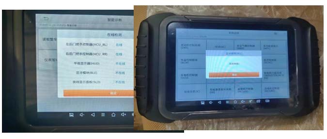 1.使用诊断仪进入智能诊断-在线检测,发现BLE/HUD均显示不在线(如图),单独诊断测试BLE/HUD模块均显示连接失败;