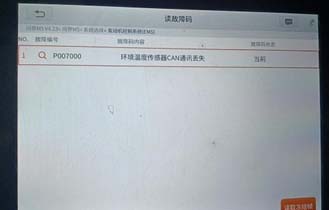 1.车辆进站用诊断仪检测进发动机系统读取故障码POO7OO环境温度传感器CAN通讯丢失 。无钥匙进入系统NFC-PE连接失败,空调AC不可以用 进不去