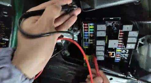 4.检查前舱保险盒,发现UEC保险连接线到前舱保险盒的固定螺母非常松动;