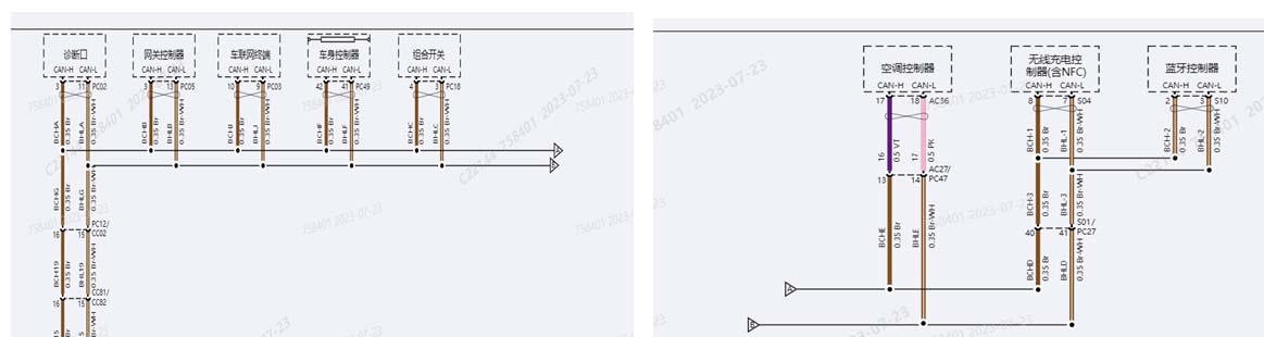 BCM网络CAN线直接通到了诊断接口,无中间节点插头标识),逐个插头进行排查,最终发现副仪表线束主插头锁舌未锁止,插接不到位;