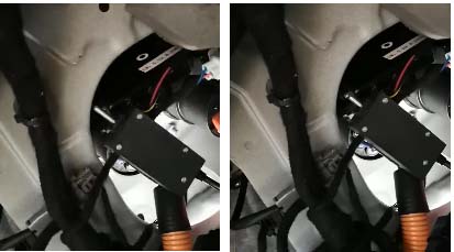 3.将左后侧围内饰板拆下(用专用工具,勿蛮力拆卸,以防内饰板损坏),再将慢充锁销机构拆下,用随车充电枪慢充测试,发现慢充锁销可以弹出,随后又缩回去,仪表仍然显示充电等待中。