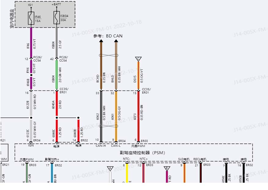 故障现象:新车到店,PDI检查中发现主副座椅通风和加热不工作,副驾驶座椅位置调节不工作。