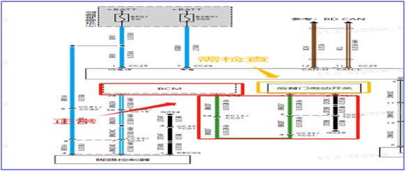 ,线路正常。需检查尾门微动开关