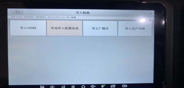 4、从MRR-R1进入然后进入写入数据,再进入手动写入配置信息,然后备份配置字