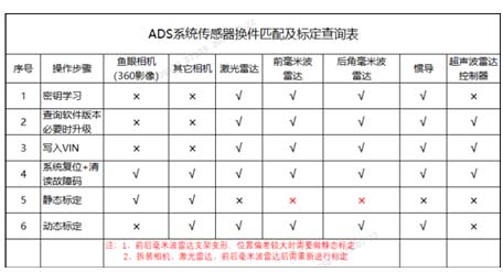 ADS升级成功后,版本不匹配的故障码消失了,上路动态标定,依然标定失败。再次查看ADS系统匹配查询表: