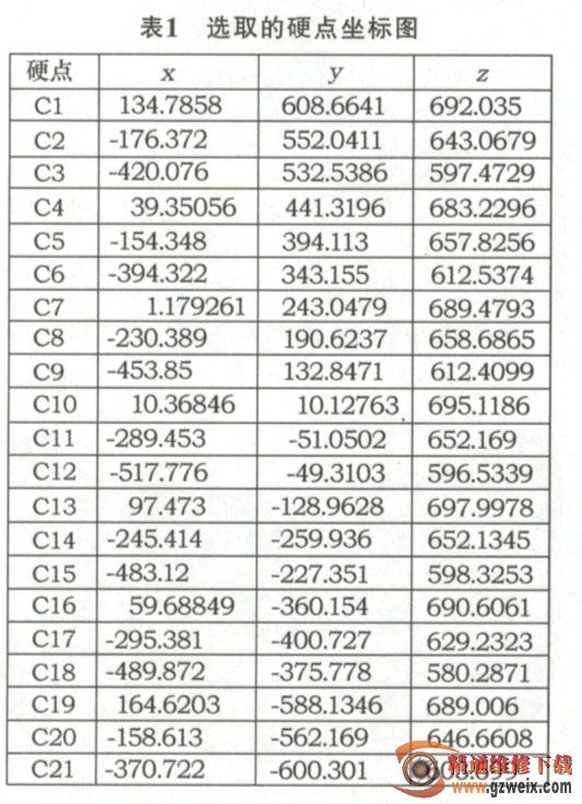 由图4可知,刮水器的两个输出轴已经作为危险点被选在了测试范围内,分别为C13和C19。选取的各个测试硬点坐标见表1。后面将会对这选取的21个硬点进行伤害值的模拟测试。