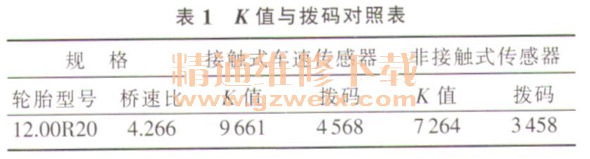 分时四驱车下线车速表检测,只能在两驱(不锁前桥)模式下进行。对于仪表的拨码需要按照表1来进行。此时分时四驱车与常规的两驱车检测方法相同。