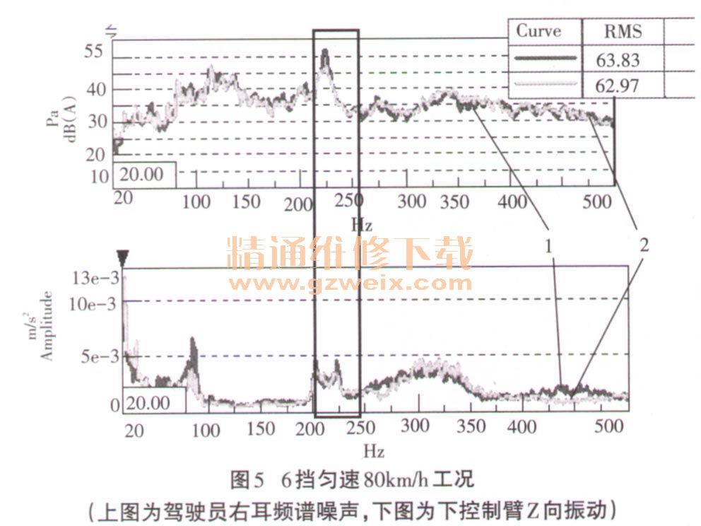 综上所述,对前悬架下控制臂Z向采取封闭加强措施能防止下控制臂振动放大问题,并有效降低该样车的前排路噪。