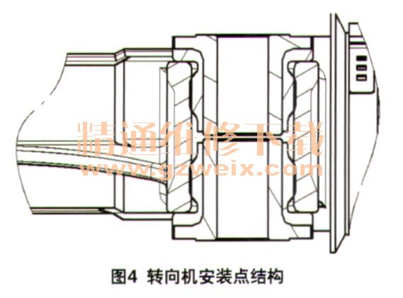 对于两点安装的转向机,安装点的结构一般选用分段式结构,上下衬套对压(图4),衬套刚度的选型也影响整个转向系统刚度性能。针对某运动型多功能车,转向机安装衬套刚度定义为1.5 Kn/mm,能很大程度改善转向中间位置感。