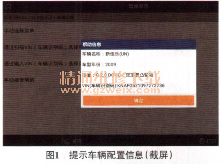 (4)输入正确的VIN码,点击“确定”,提示车辆配置信息(图1)。