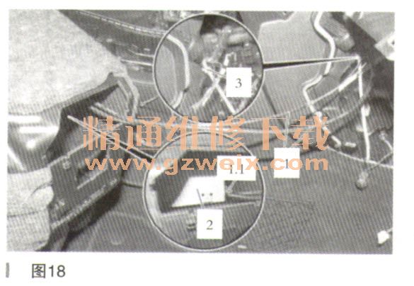 (6)加装CD驱动器线束,连接左侧脚部位置接地点,如图16~图18所示。