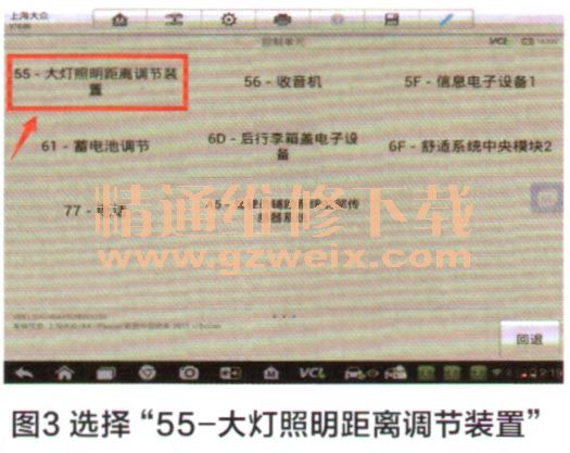4.选择“55一大灯照明距离调节装置”,如图3所示。