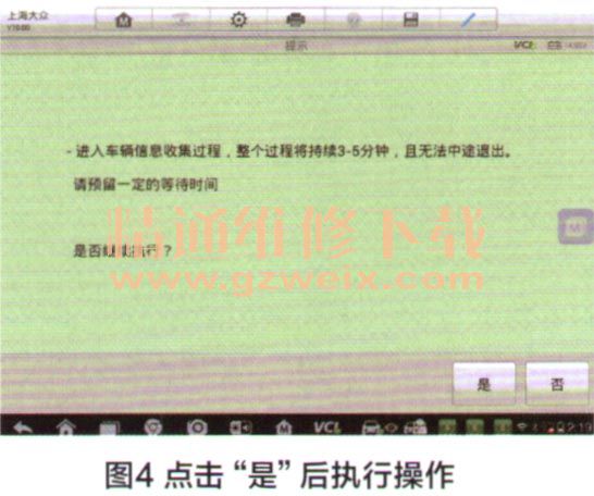 5.点击“是”,系统将自动收集车辆信息,整个过程持续3-5分钟左右,且无法中途退出,如图4所示。
