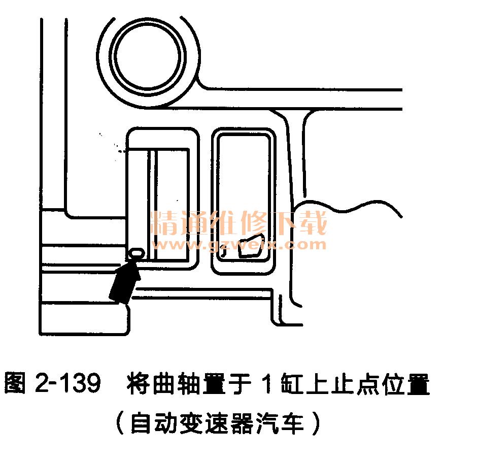 (3)将曲轴置于1缸在上止点位置(自动变速器汽车),如图2-139所示。