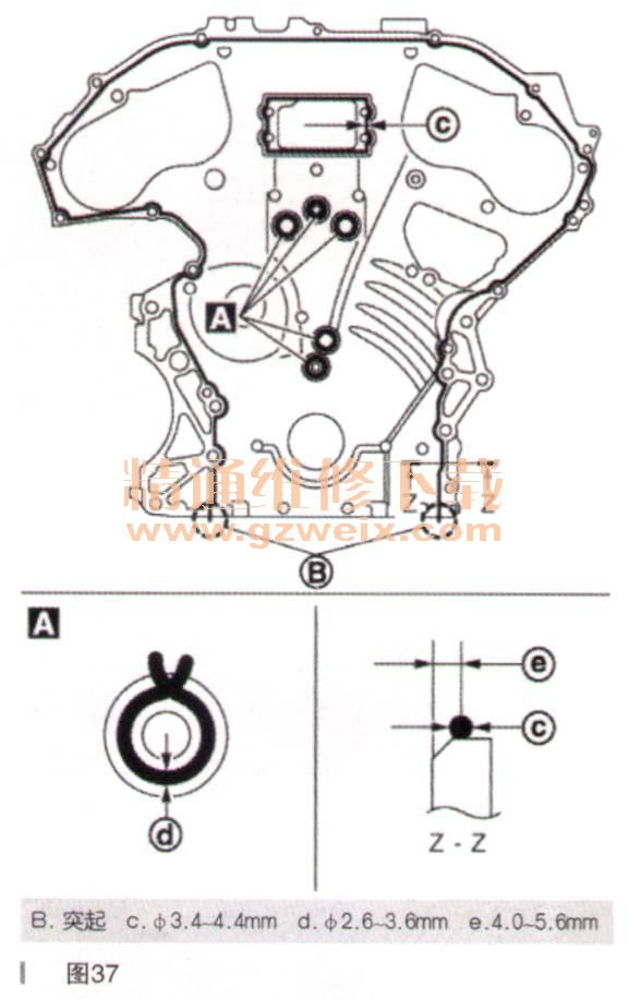 ②将液体胶涂在如图38所示的油底壳(上部)的上表面。