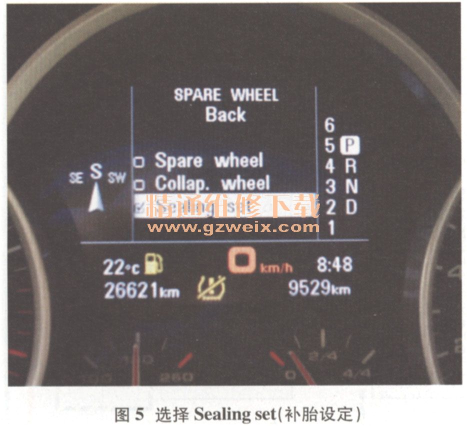 (6)如图5所示,选择“Sealing set”(补胎设定)。