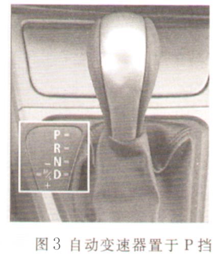 3)自动变速器车型,将变速器置于P挡位置,见图3,变速器温度低于80℃。