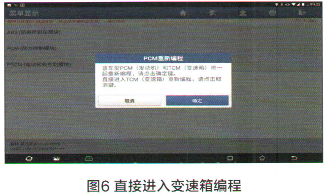 6.该车型发动机和变速箱编程是在一起的,我们这里选择单独对变速箱编程,点击“取消”按键,将会直接进入变速箱编程,如图6所示。