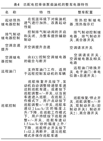 3.2.1匹配电控柴油机的整车电器特性 (表3~表6)