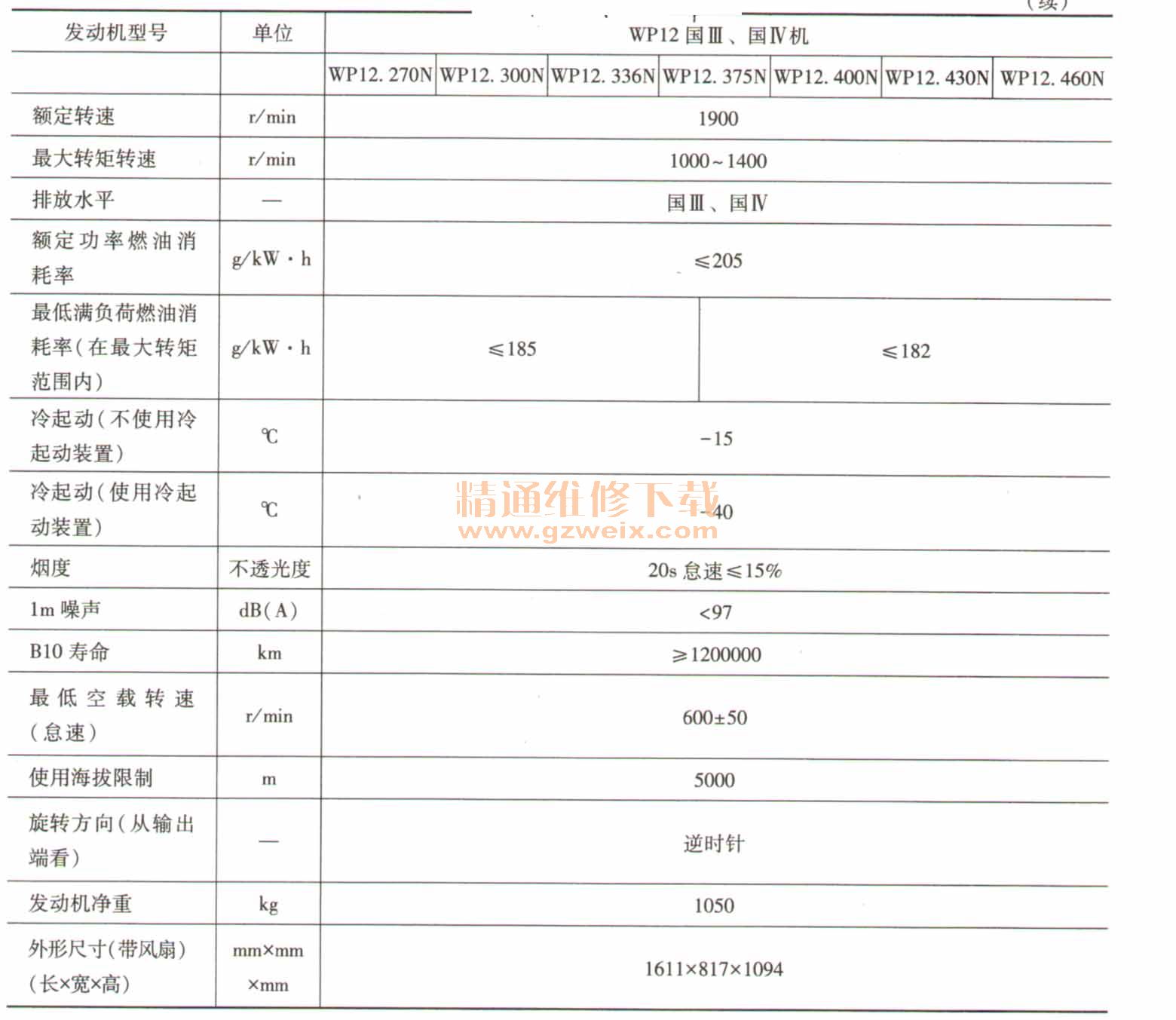 表4-2 蓝擎WP12N系国Ⅲ、国Ⅳ柴油机型谱