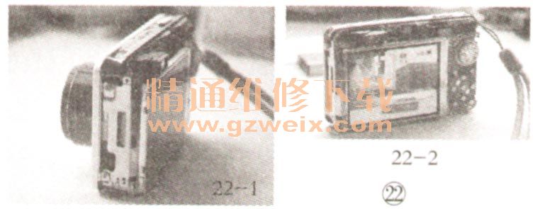 6.至此相机主要组件组装完成,可以装入电池开机测试,相机镜头能正常伸缩,聚集正常,屏幕没有再出现“关闭电源并重新开启”提示,如图22-1、22-2所示,相机修复成功。