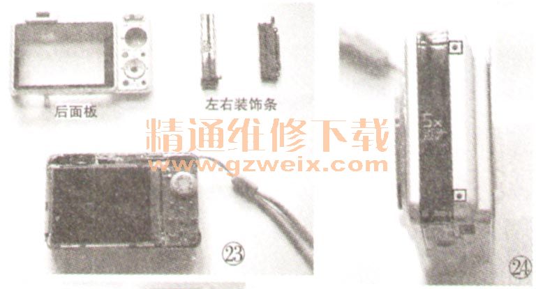 7.余下的步骤就是安装相机左右两边的装饰条和后面板,如图23~26所示,图中实线框的地方用螺丝固定即可。