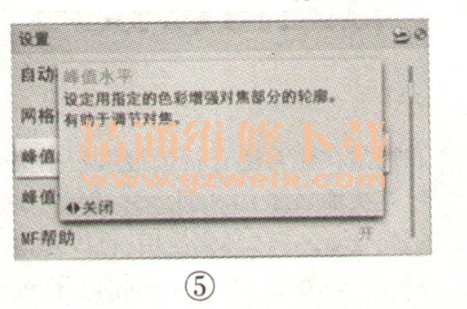 手动对焦时,需要眼睛在液晶屏上确认合焦的部位是否精准,特别是如绿叶这类对比度较低的物体,虽然可以放大显示,但有时仍没办法完全确认对焦点的位置。这时利用相机的峰值对焦功能,如图5所示,可以非常直观地确认合焦的部位,保证焦点准确无误。