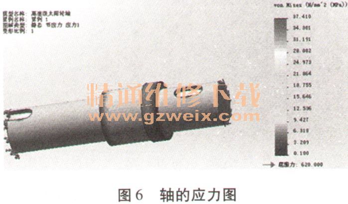 (1)通过运行发现,选择45号钢作为轴的材料,强度、硬度明显不足,算例失败。见图5。故考虑采用性能较好的经过调质处理的40Cr,弹性模量为210 GPa ,泊松比=0.29,屈服强度为620 MPa。