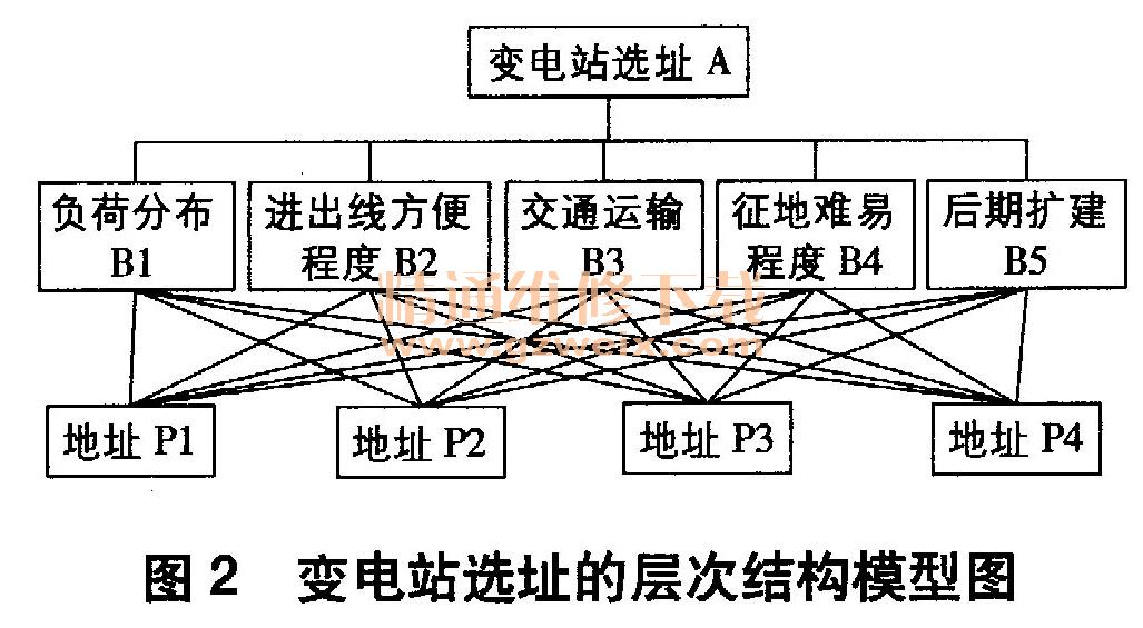 变电站的选址问题是一个复杂的系统工程,需要通过前期调研,充分了解选址涉及的各因素情况。如果能将这些因素按一定标准进行分析、评估、排序及计算,进而获得每个因素对变电站选址影响的大小,然后分析每个变电站的优劣程度,那么就能使复杂的问题得以解决。