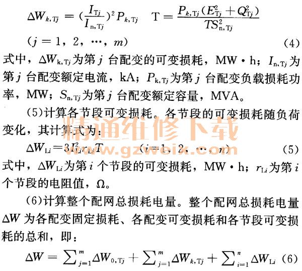 式中,Itj为第J台配变平均电流,kA;Etj为第j台配变有功电量,MW . h;吼为第J台配变无功电量,Mvar;U为配变额定电压,kV; T为第j台配变运行时间,h;m为整个配网配变总数量。