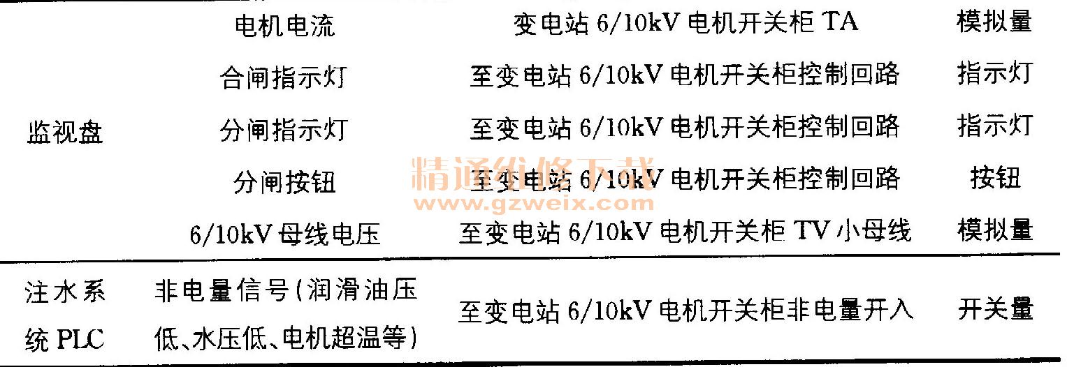 传统方式下注水站侧需要设置的操作、监视设备信号需求见表1。