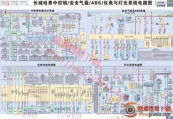 长城哈弗中控,安全气囊,ABS,仪表与灯光系统电路图